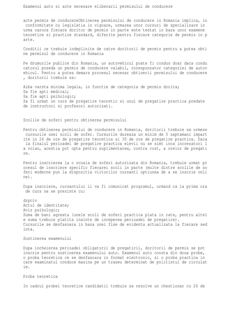 Examenul Auto Si Acte Necesare Eliberarii Permisului De Conducere