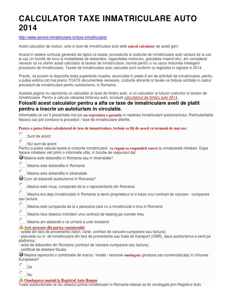 Calculator Timbru Auto 2014 Taxa De Mediu