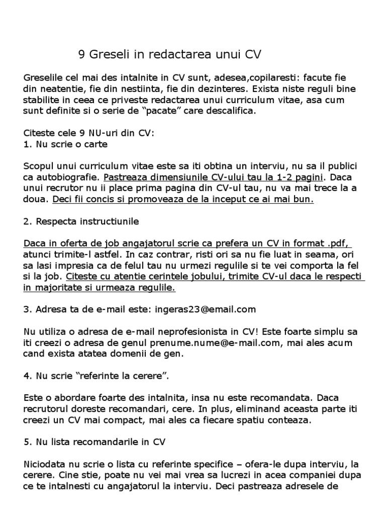 Doc 9 Greseli In Redactarea Unui Cv Emma Mihai Academia Edu