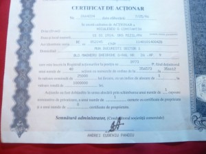 Vand Certificat Actionar La Miraj Bucuresti Un Nr De 359 Act Pret Neg