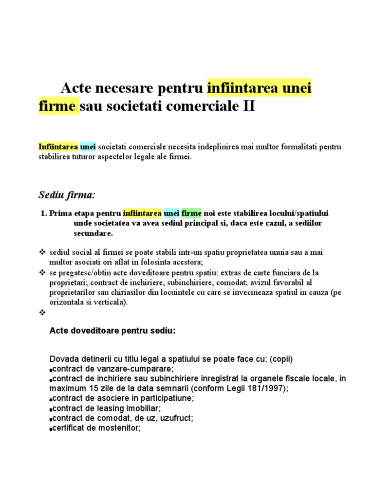 Doc Acte Necesare Pentru Infiintarea Unei Firme Sau Societati Comerciale Madalin Tudorache Academia Edu
