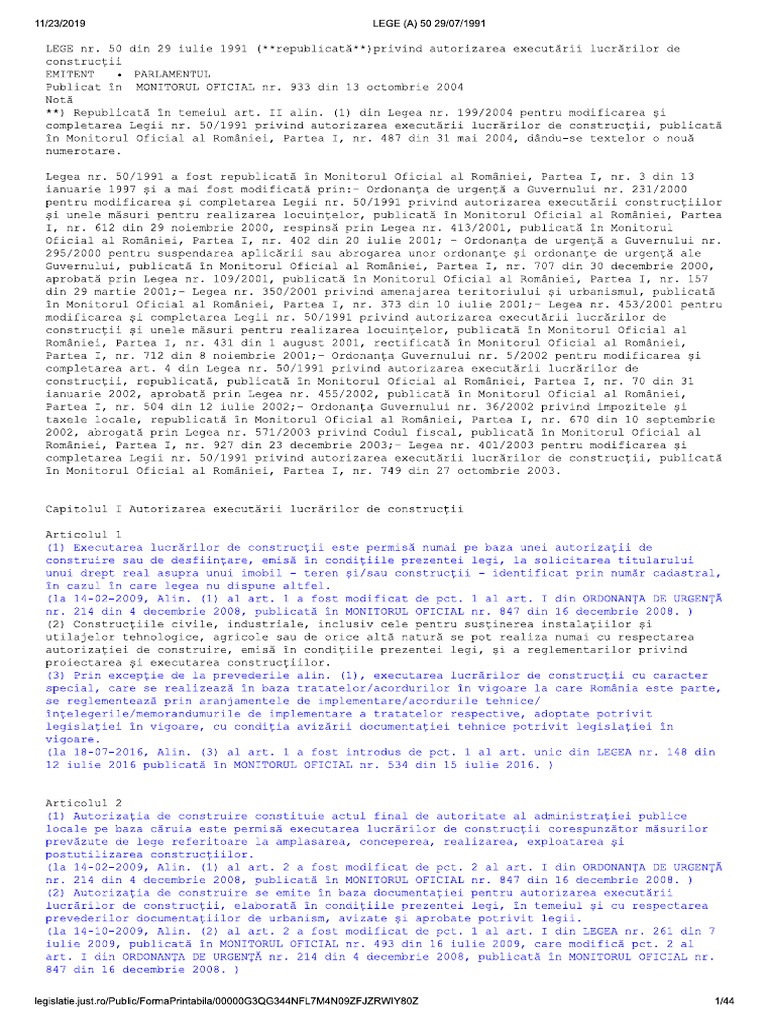 Legea 50 1991 Actualizata In Nov 2019 Pdf