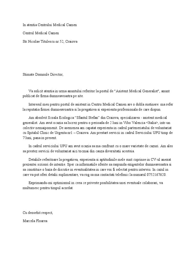 Modele De Scrisoare De Intentie In Limba Engleza Internship Motivation
