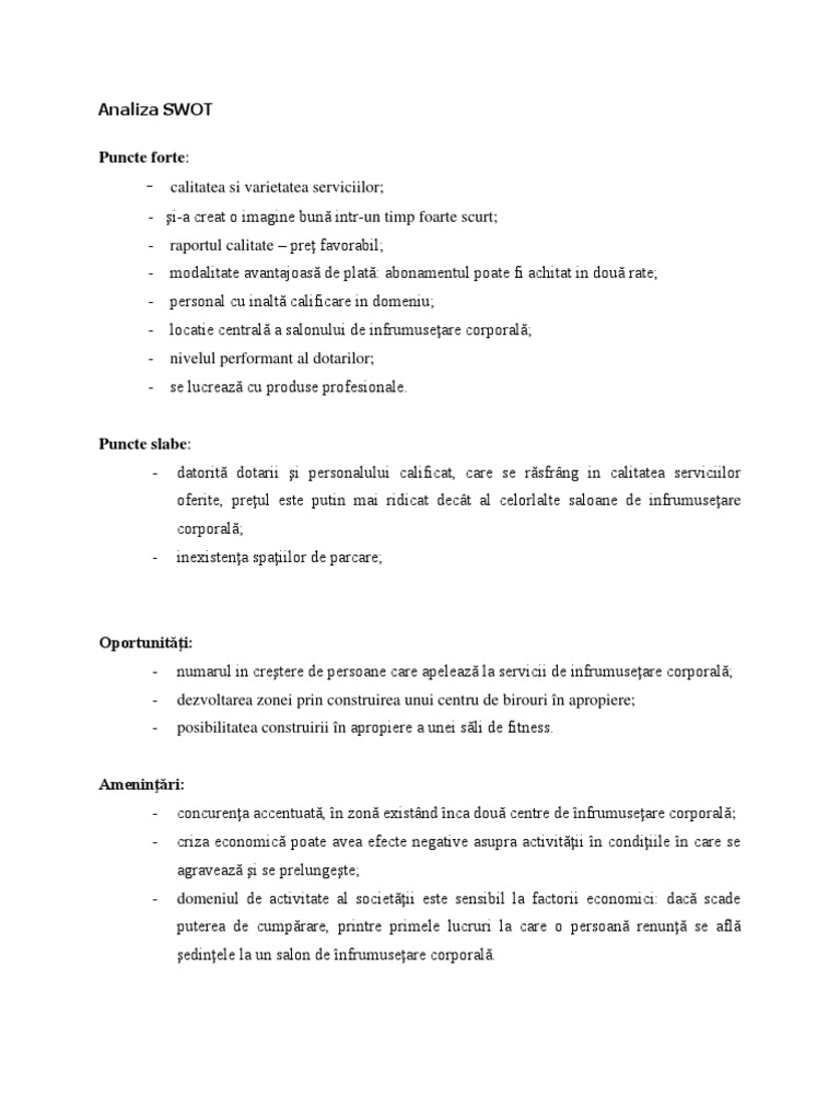 Doc Analiza Swot Popa Emilian Ion Academia Edu