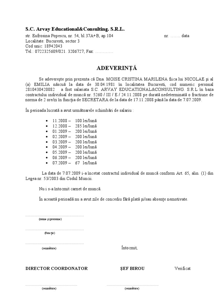 Adeverinta De Vechime 1
